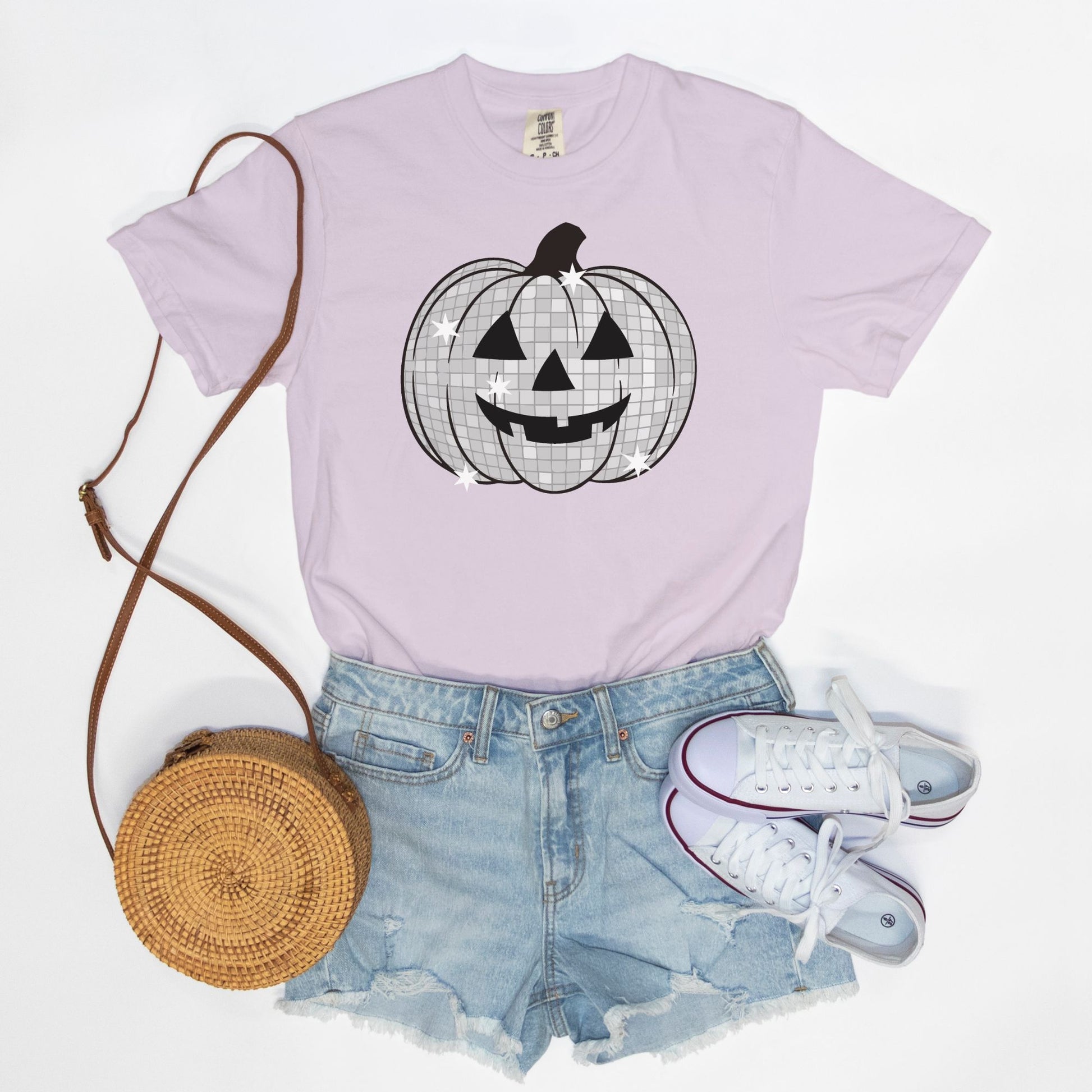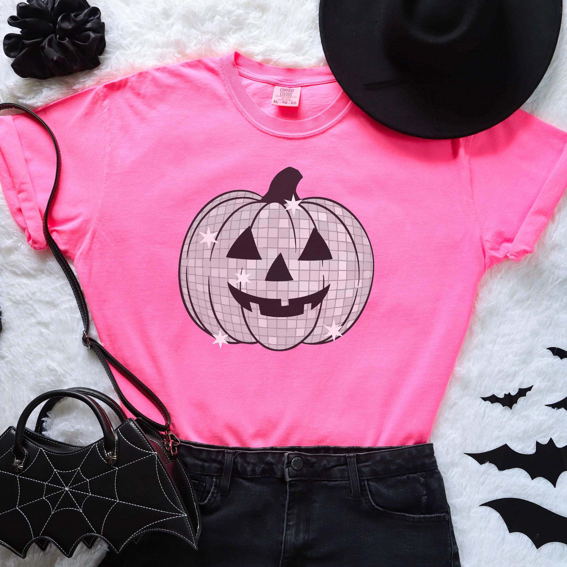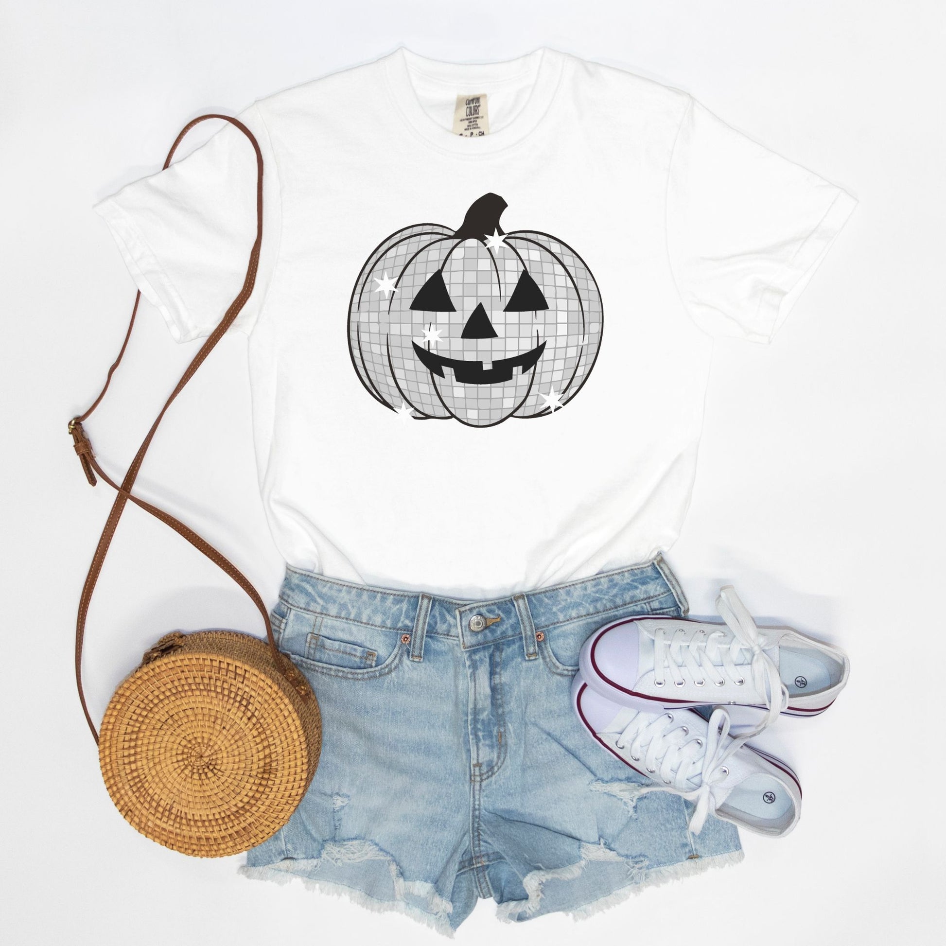 Get ready to shine this Halloween with the Disco Jack O Lantern Tee. Made for comfort and style, this tee features a festive jack-o-lantern design that adds a fun pop to your seasonal wardrobe. Whether you're attending a spooky party or enjoying a night of trick-or-treating, this striking t-shirt is the ultimate choice for celebrating the spirit of Halloween in style.