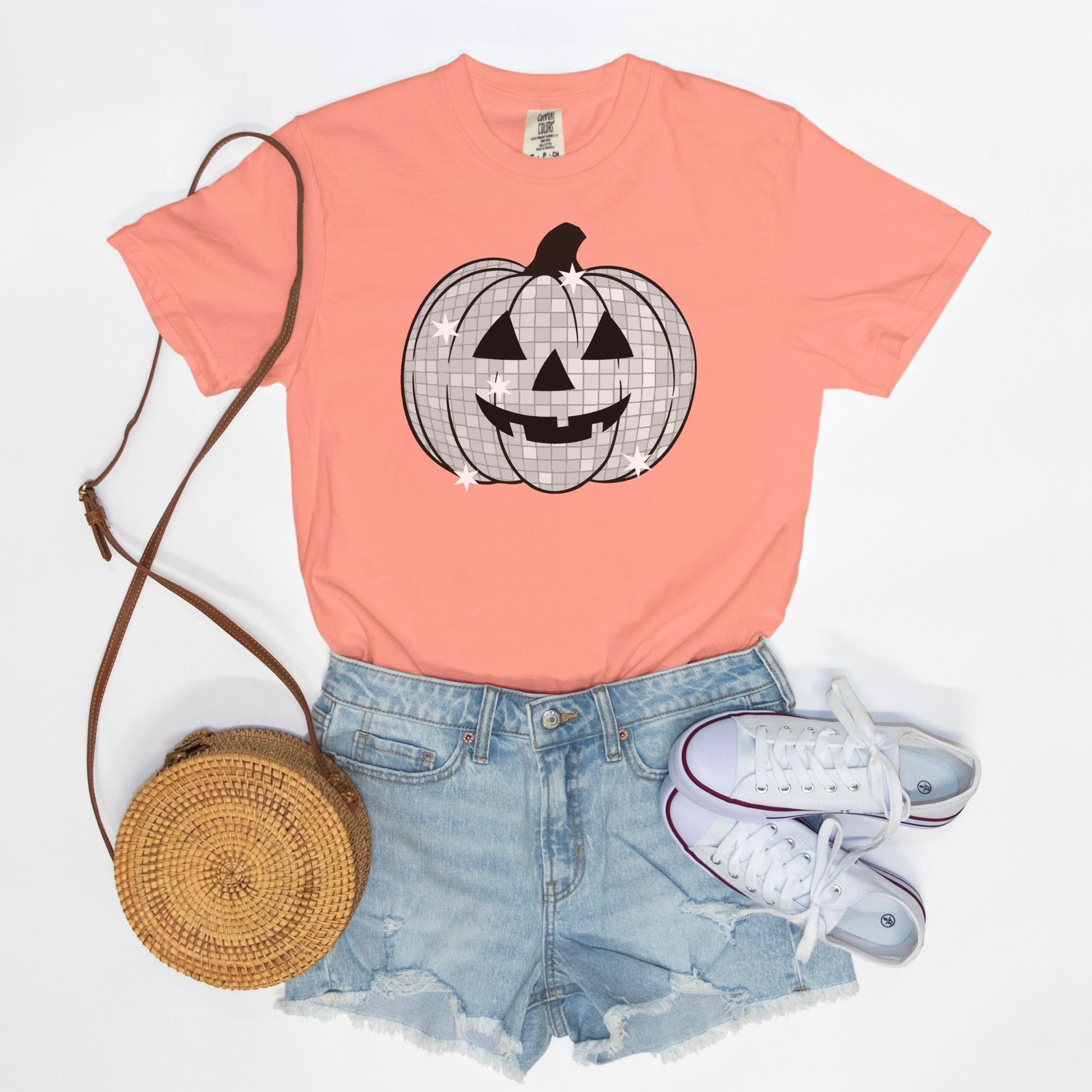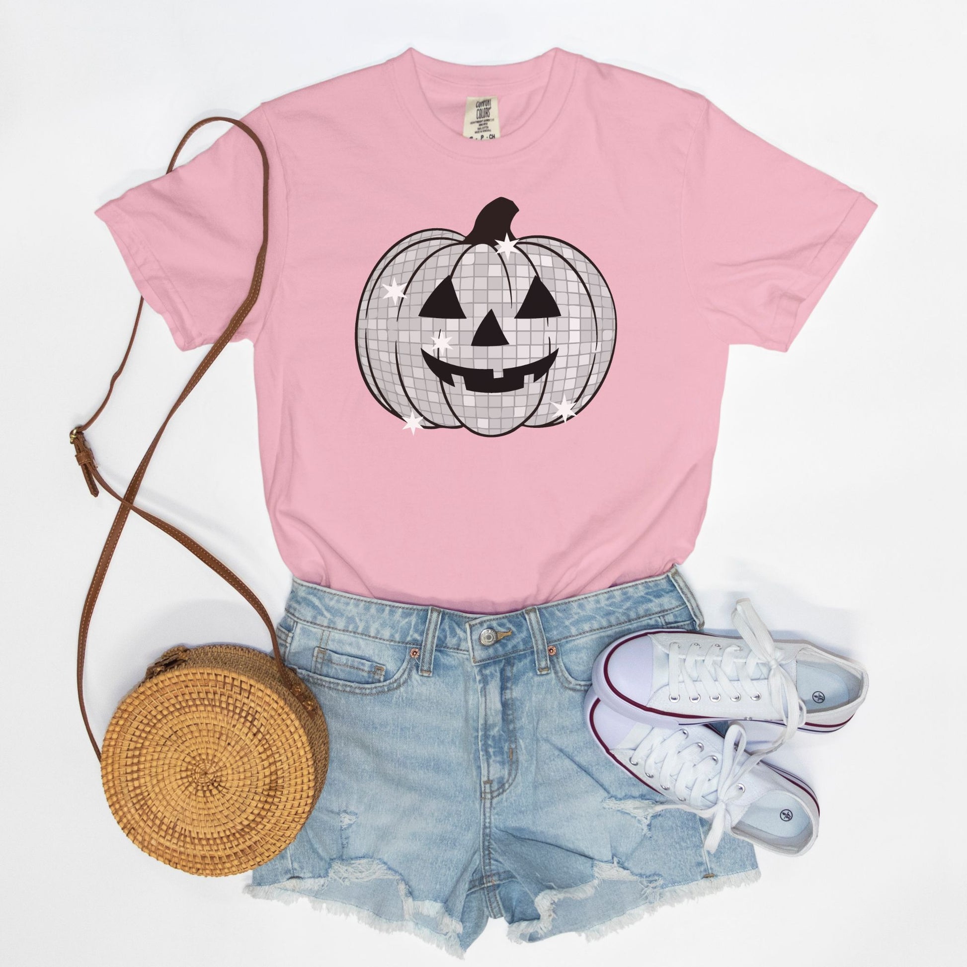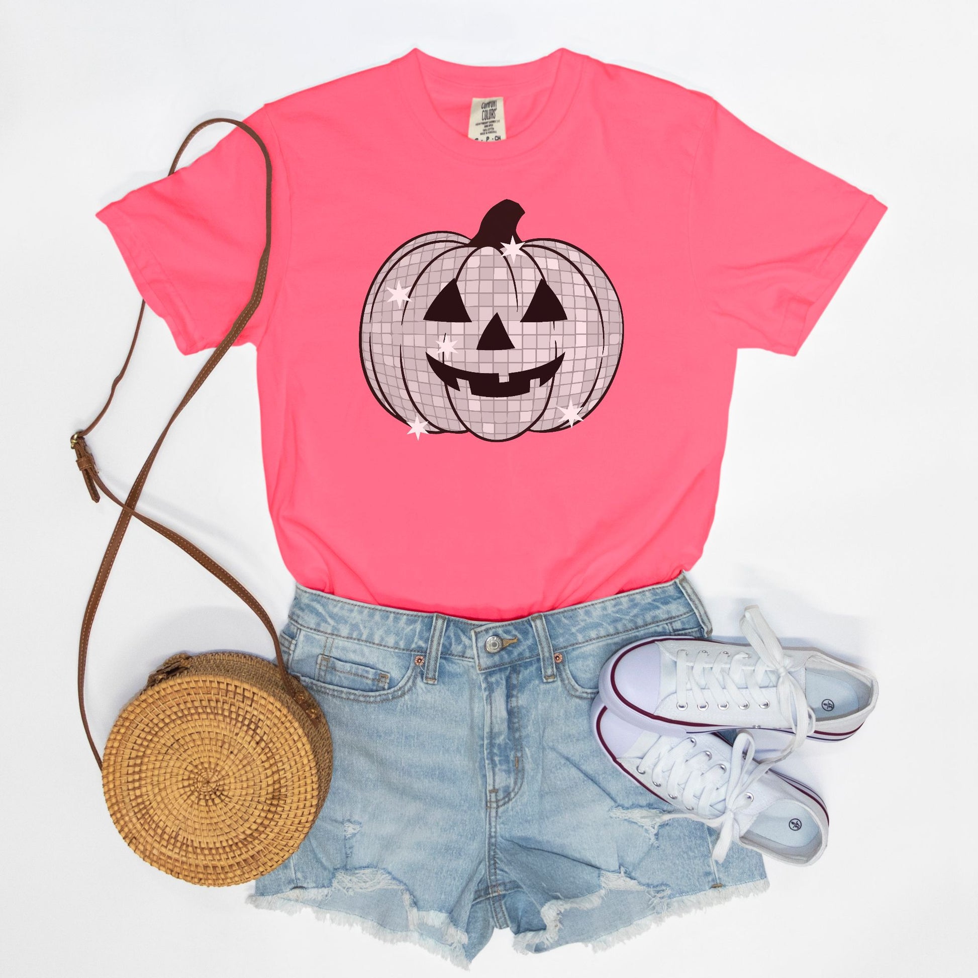 Get ready to shine this Halloween with the Disco Jack O Lantern Tee. Made for comfort and style, this tee features a festive jack-o-lantern design that adds a fun pop to your seasonal wardrobe. Whether you're attending a spooky party or enjoying a night of trick-or-treating, this striking t-shirt is the ultimate choice for celebrating the spirit of Halloween in style.