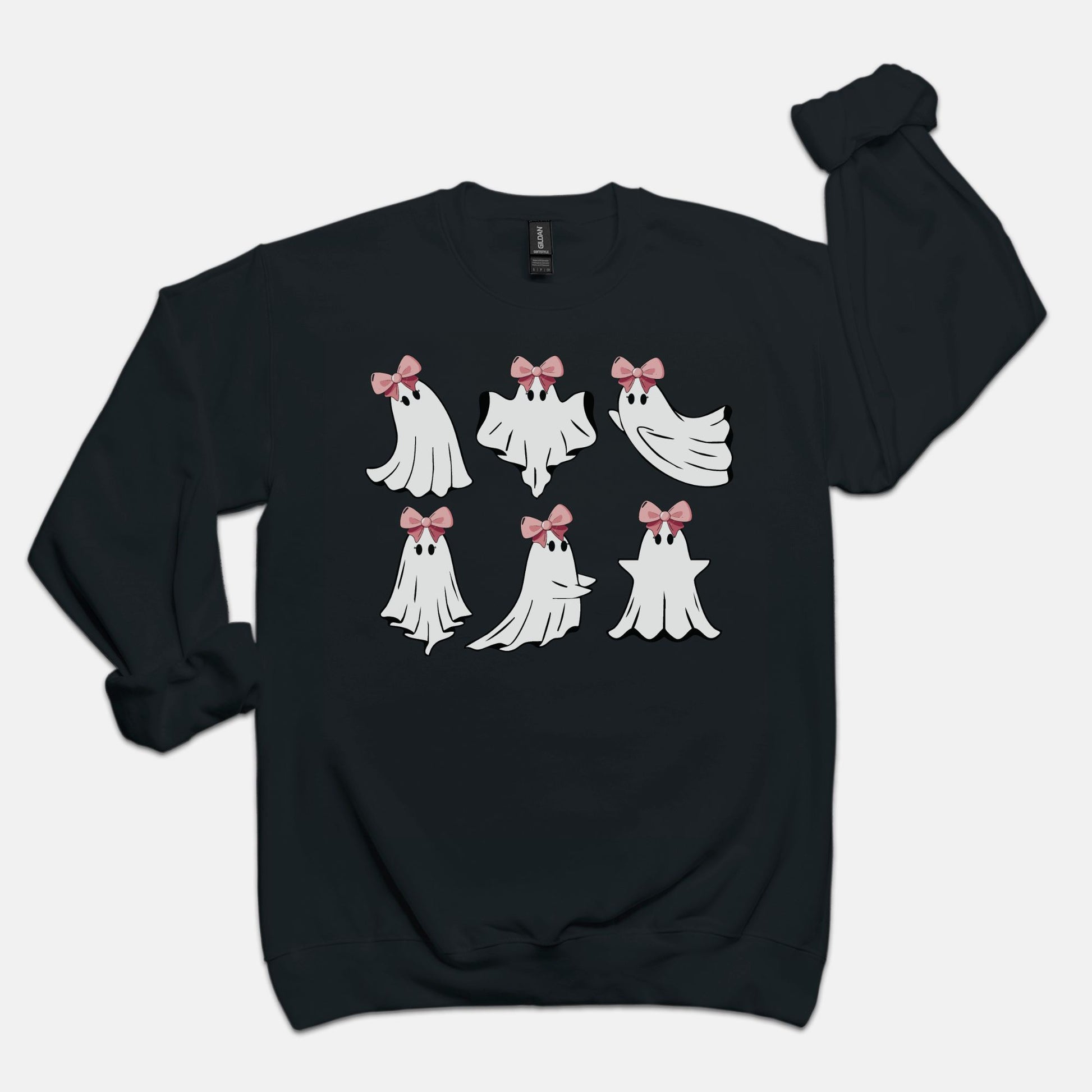 Introducing the "Ghosts in Bows Crewneck," a playful blend of comfort and festive spirit. This cozy sweatshirt features adorable, girly ghosts adorned with charming bows, perfect for getting into the Halloween spirit. Available in classic Black, versatile Gray, and sweet Light Pink, it caters to all styles. Elevate your Halloween wardrobe with this delightful crewneck that's perfect for parties, gatherings, or a cozy night in.