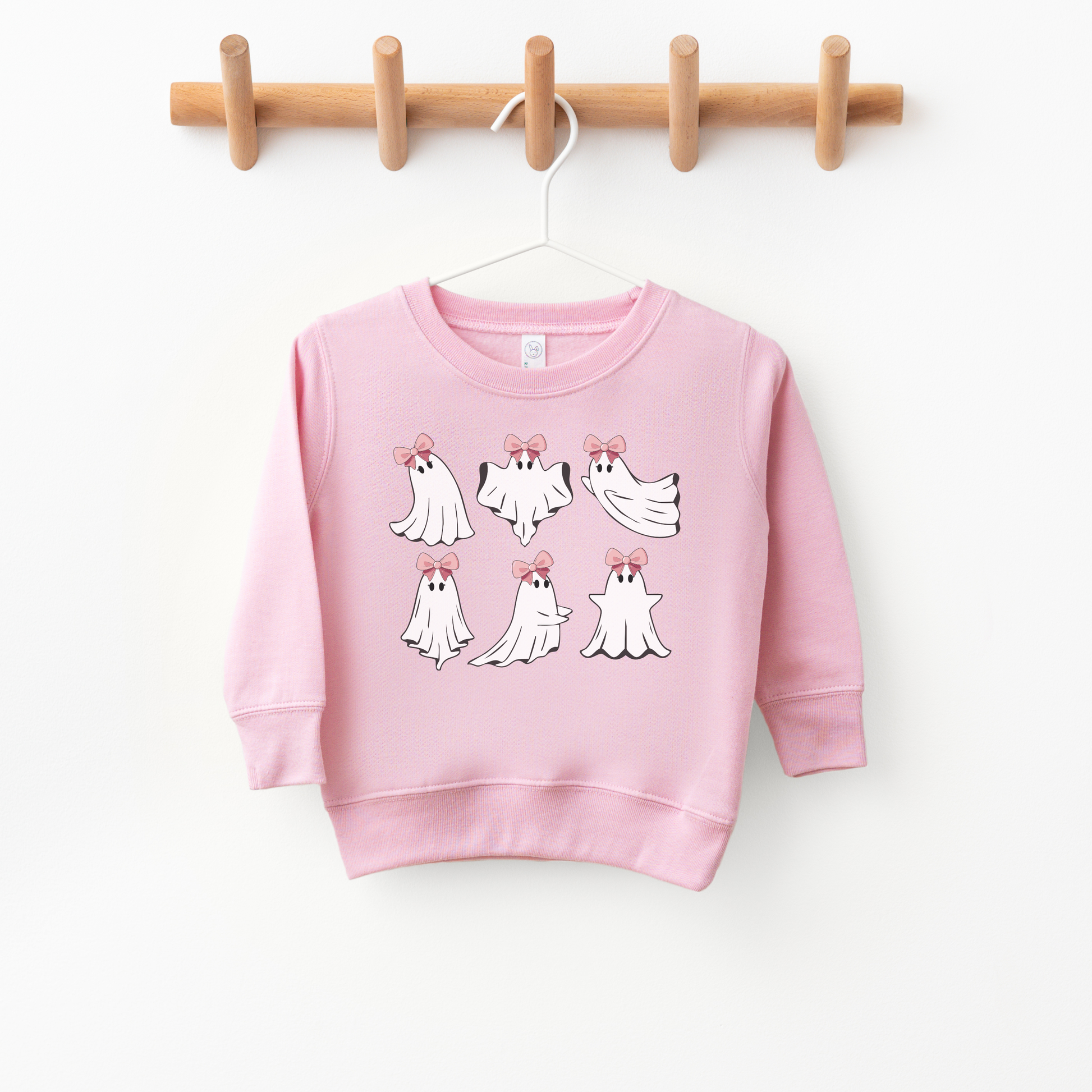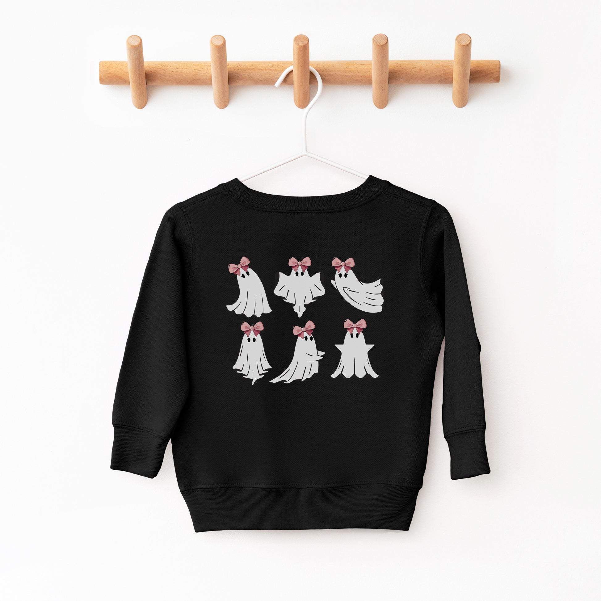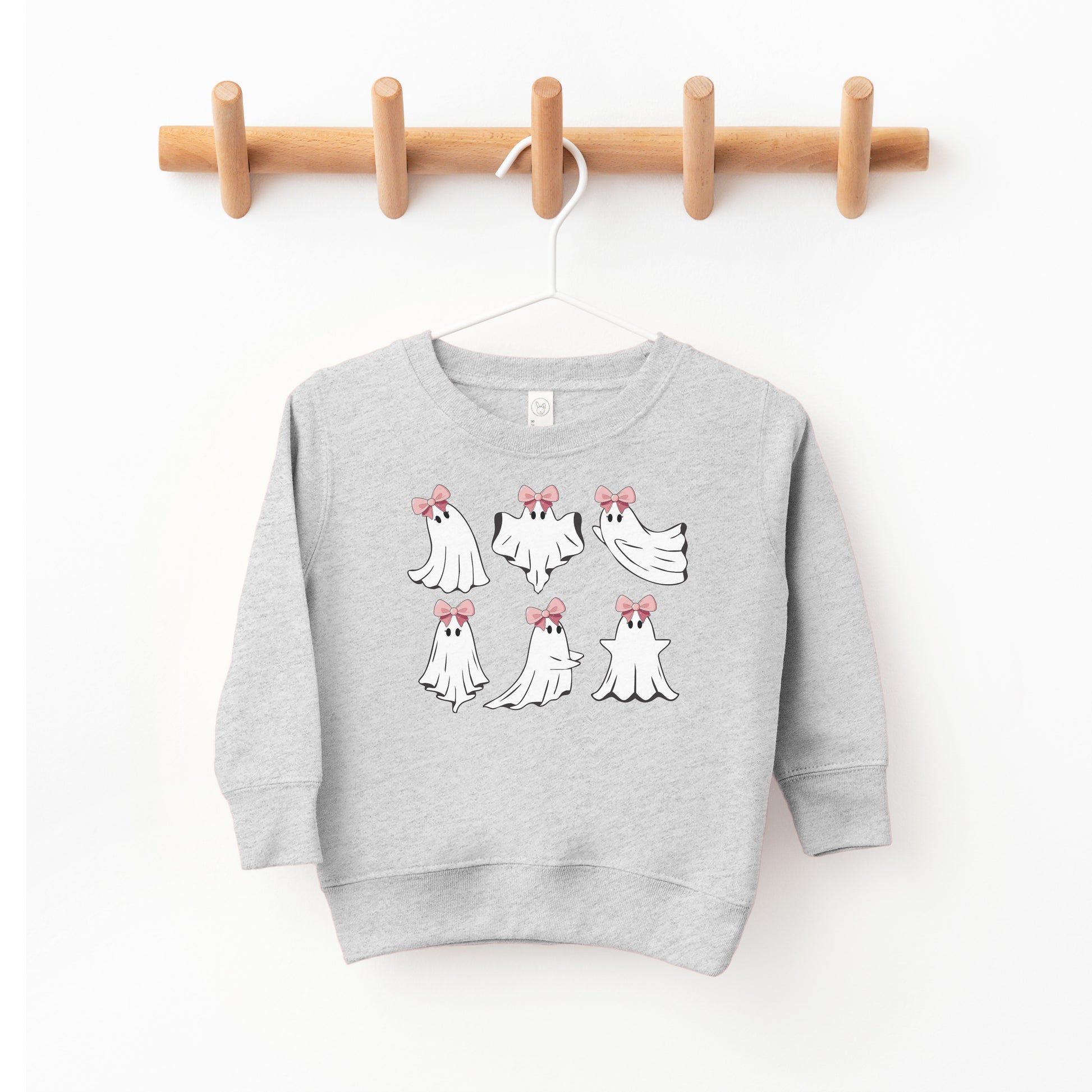 Get ready for Halloween with the adorable Ghosts in Bows Toddler Crewneck! This charming sweatshirt features playful, girly ghost designs, perfect for little ones who love the spooky season. Available in black, heather, and pink, it brings a fun twist to their holiday wardrobe. The soft fabric ensures comfort, while the range of sizes from 2 to 5/6 allows for a perfect fit as your child grows. Whether for trick-or-treating or festive gatherings, this crewneck will keep your toddler cozy and cute all season long.
