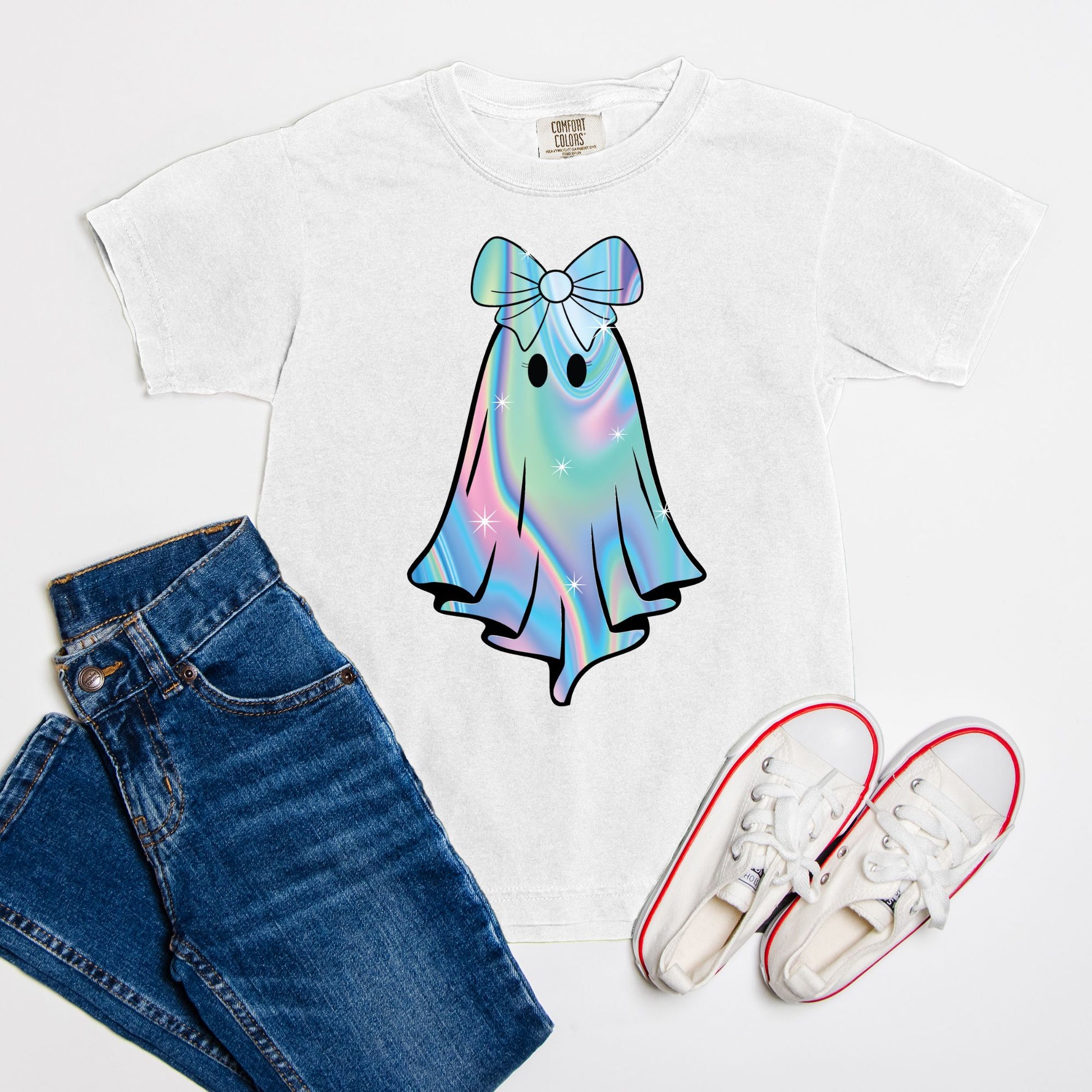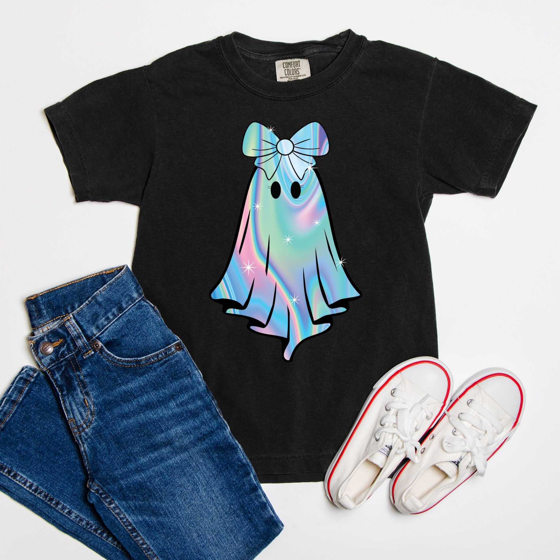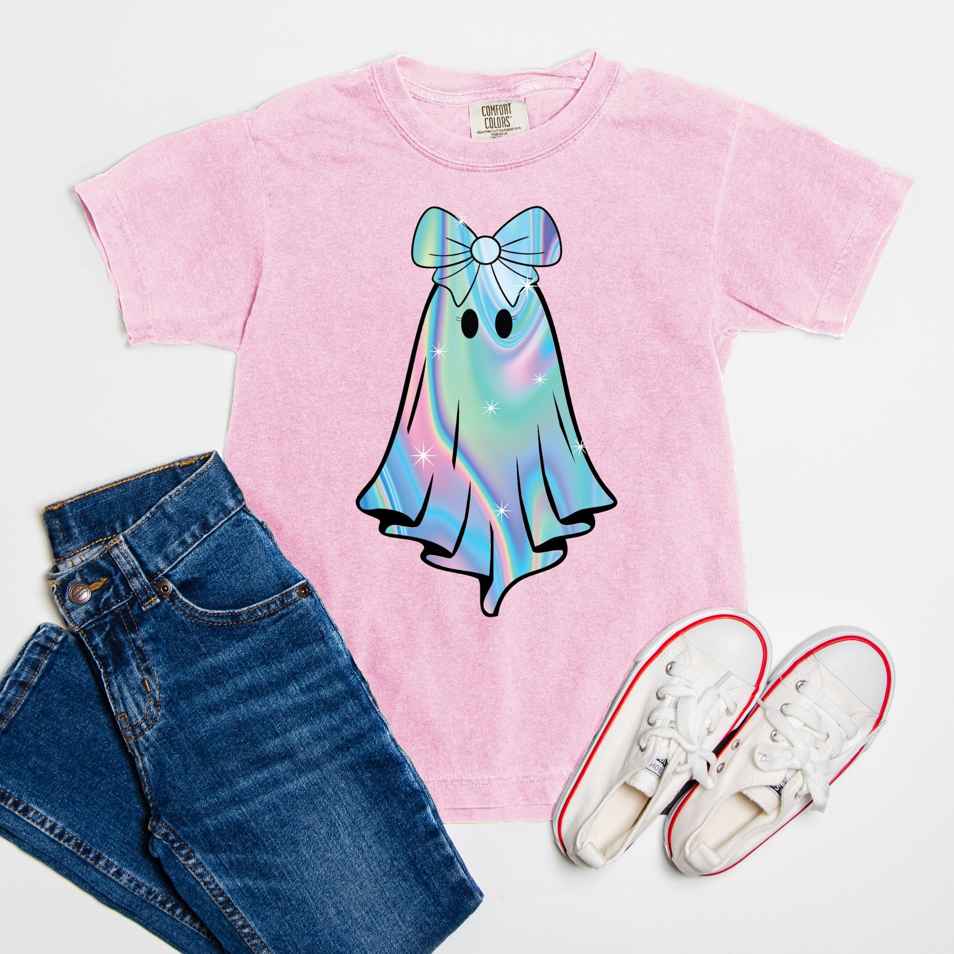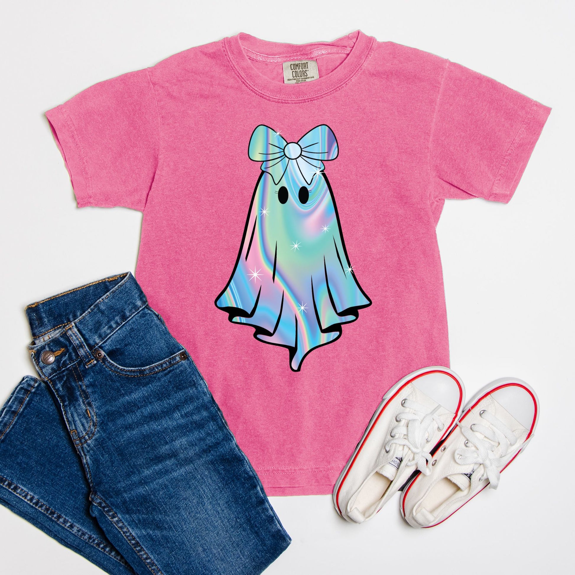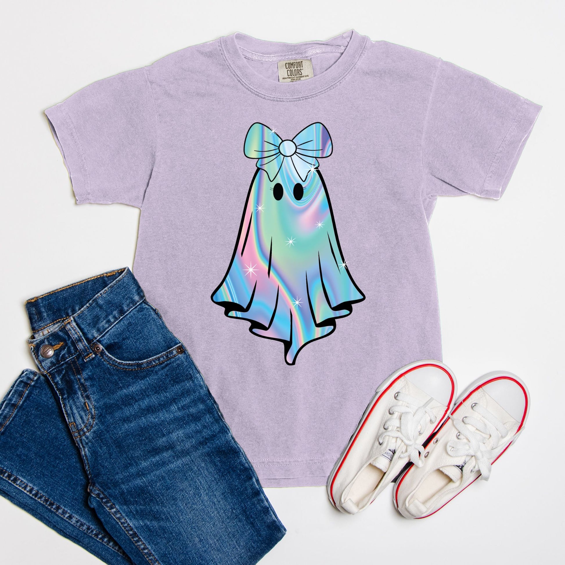 Unleash your child's spooky spirit this Halloween with the Iridescent Ghost Youth Tee. Crafted from soft, premium fabric, this shirt offers both comfort and style. Available in five enchanting colors—Violet, Black, Blossom, Crunchberry, and Pepper—it's perfect for all Halloween festivities. The playful ghost design adds a fun twist, making it an ideal choice for trick-or-treating or festive gatherings. Offered in sizes S, M, L, and XL, this tee ensures a great fit for every young ghost hunter. Let the celebrations begin!