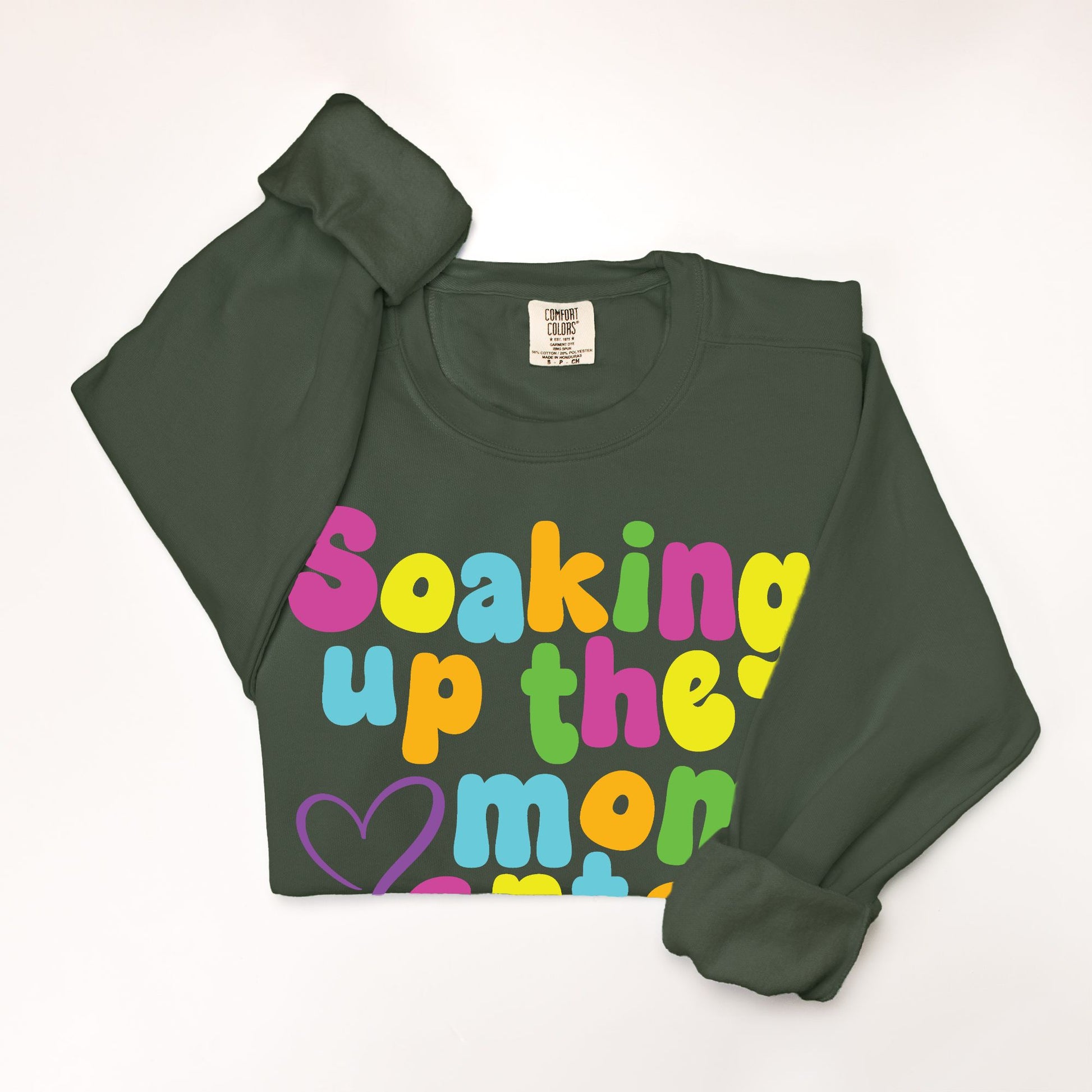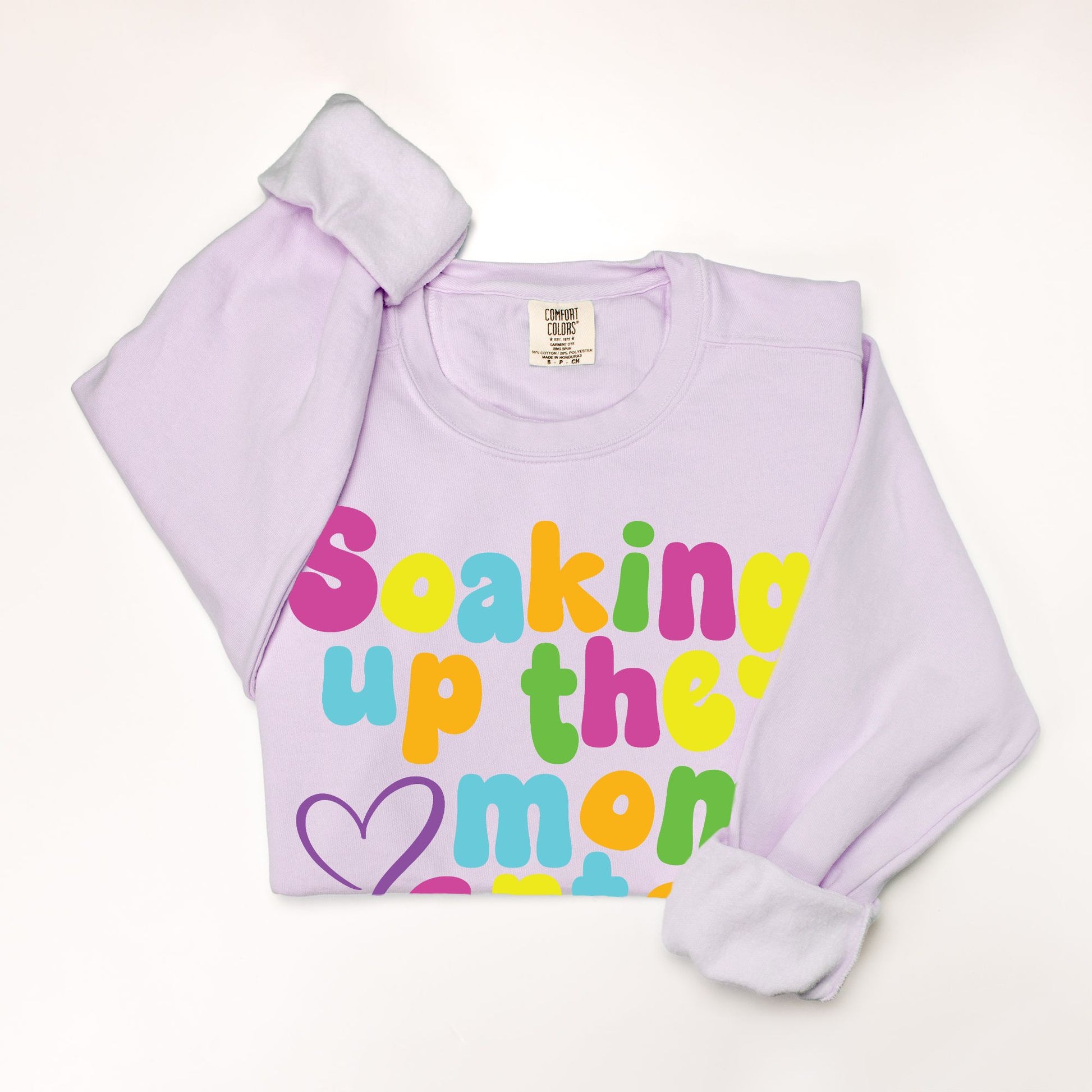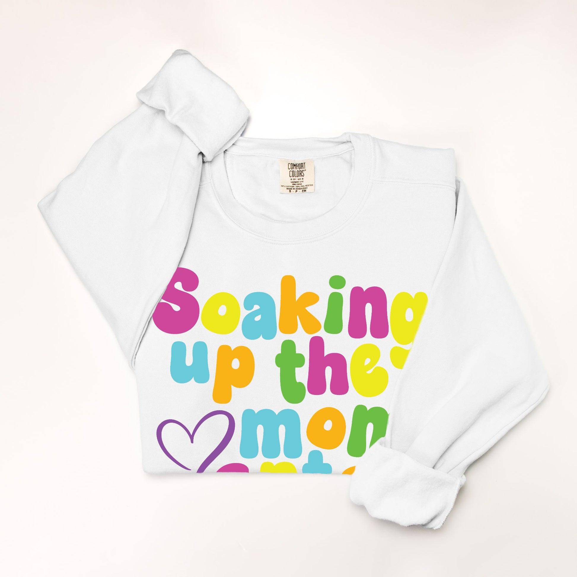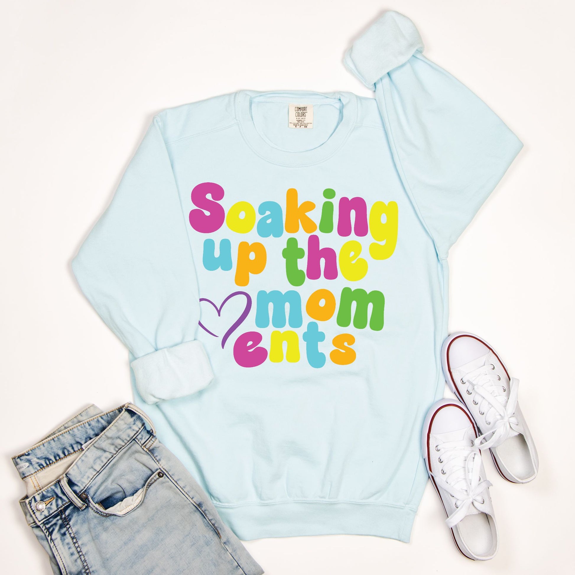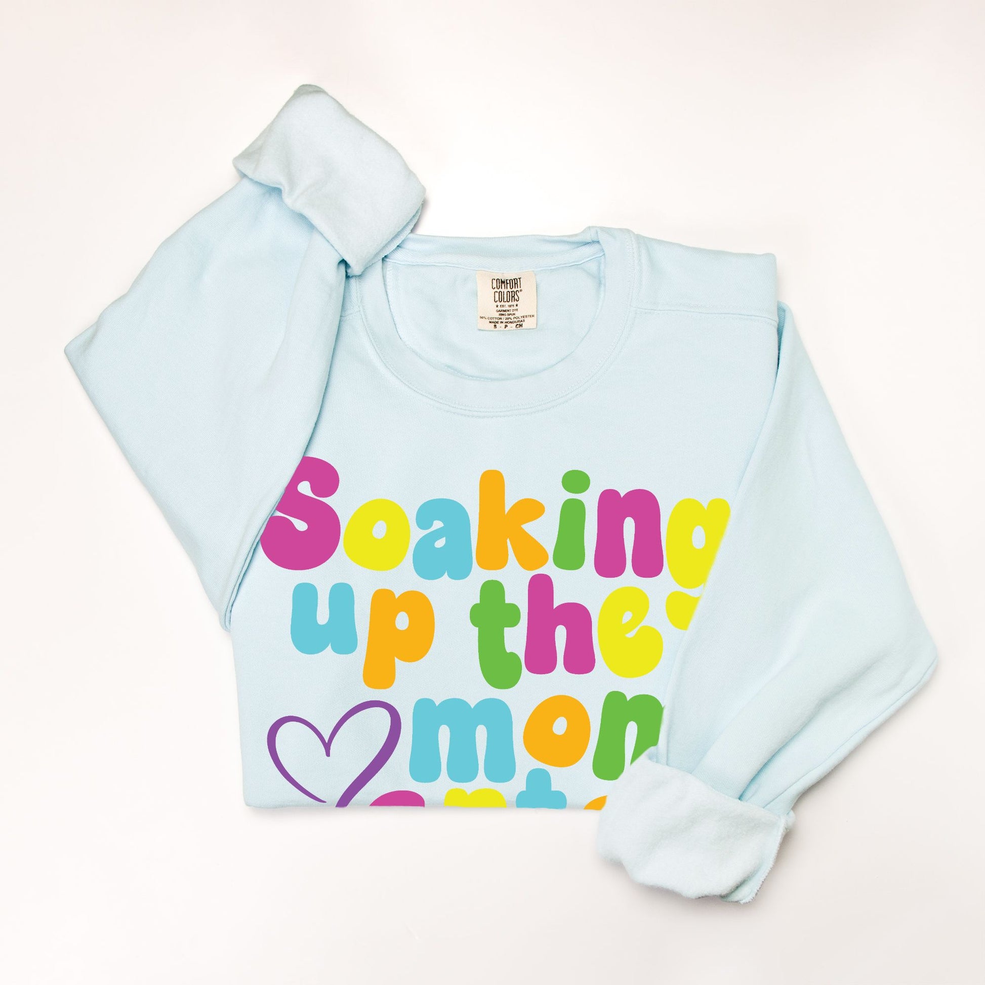 Wrap yourself in nostalgia with our "Soaking up the Moments" Crewneck Sweatshirt. Available in soothing shades of Blue Spruce, Chambray, Orchid, and classic White, this sweatshirt invites memories of cozy gatherings and easy weekends. Made with a soft, durable fabric, it hugs you in comfort while the timeless crewneck design is perfect for everyone ready to reminisce about the simple joys of life, making every moment feel special again.